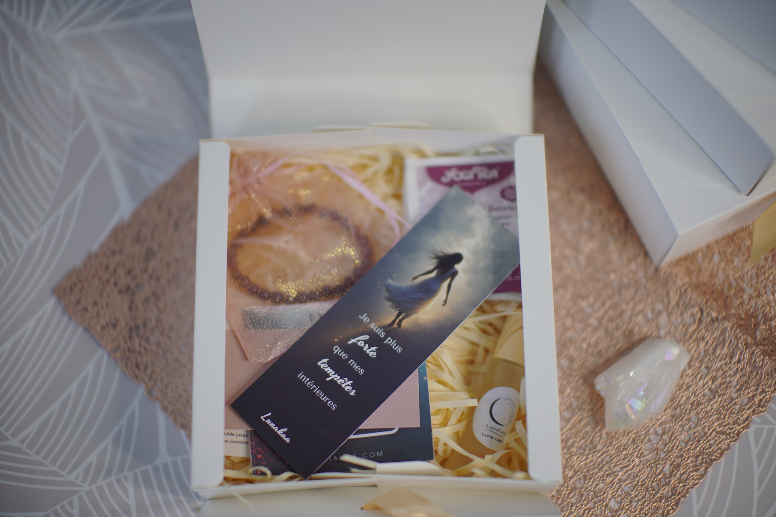 BOX DÉCOUVERTE LUNAKAA "RETOUR À SOI" Édition Limitée Noël ────────────────────────────────── CE N'EST PAS un énième produit bien-être qui va finir au fond d'un placard. C'EST un kit de SURVIE émotionnelle. Des outils CONCRETS pour les jours où tu n'en peux plus.